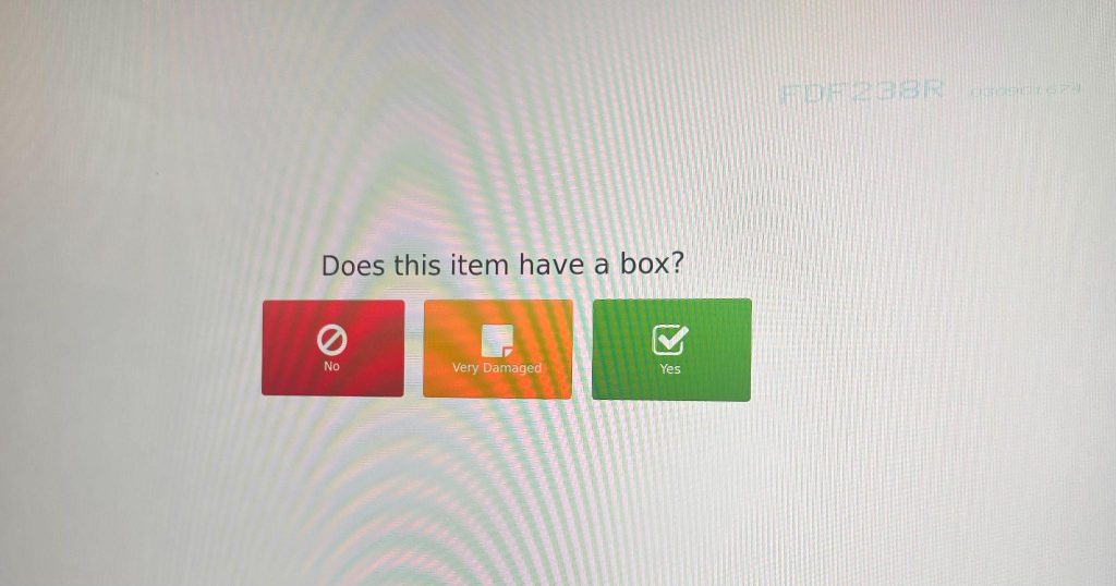- If an item came without a box or box is so damaged the item falls out, hit no box.